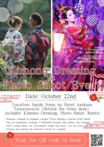 【22nd Oct.】Experience a Kimono Photoshoot Inside Henn na Hotel!